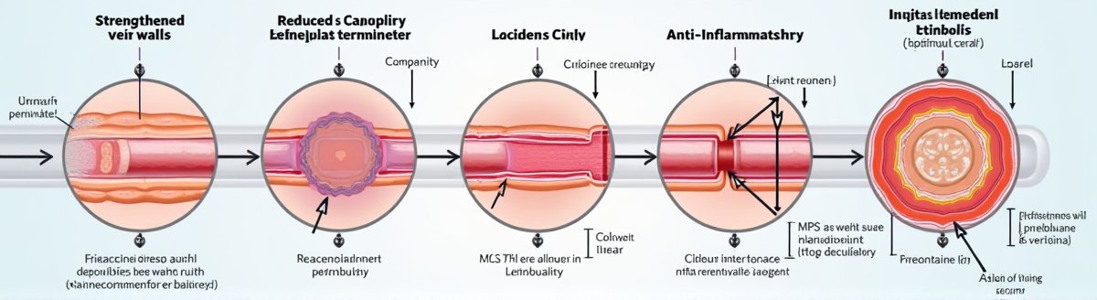 베니톨정의 작용 원리: 베니톨정의 핵심 효능은 3가지 메커니즘으로 설명할 수 있습니다: • 정맥 긴장도 향상: 약해진 정맥벽을 단단하게 만들어 혈액 순환 개선 • 모세혈관 투과성 감소: 혈관 밖으로 물이 새어나가는 것을 방지하여 부종 완화 • 염증 반응 억제: 백혈구 활성화를 줄여 염증과 통증 감소