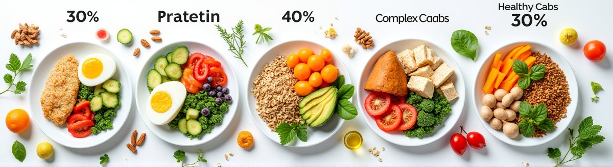 - 단백질 30%: 닭가슴살, 두부, 계란